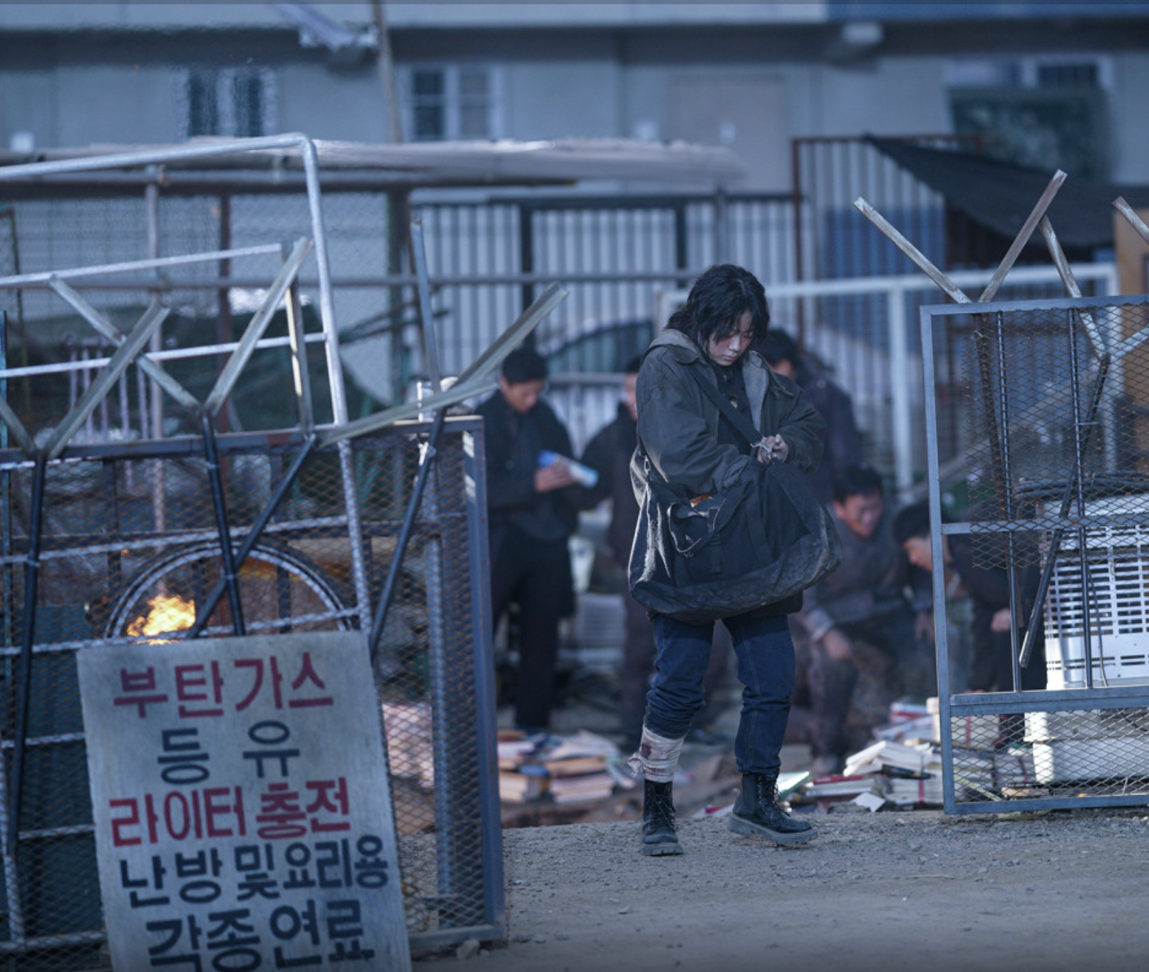 대지진 이후 도시가 다 무너져 내리고, 유일하게 멀쩡히 서 있는 황궁 아파트에 자연스럽게 ‘황궁 마켓’이 생기는데, 이 공간이 일종의 시장이자 권력의 중심이라서, 영화 내내 인물들이 이 마켓을 둘러싸고 눈치를 보고 거래를 하고 배신을 저지릅니다.