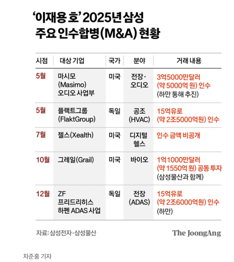 또 하나의 큰 뉴스는 삼성이 자회사 하만을 통해 독일 전장 업체(ZF의 ADAS 사업부)를 약 2.6조 원에 인수했다는 소식입니다. 내용을 보니 정말 알짜배기 인수더라고요.